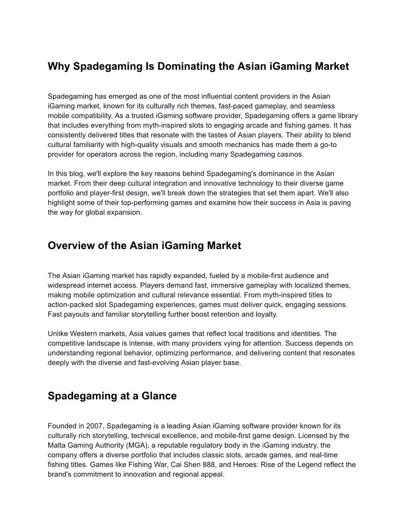 Why Spadegaming Is Dominating the Asian iGaming Market