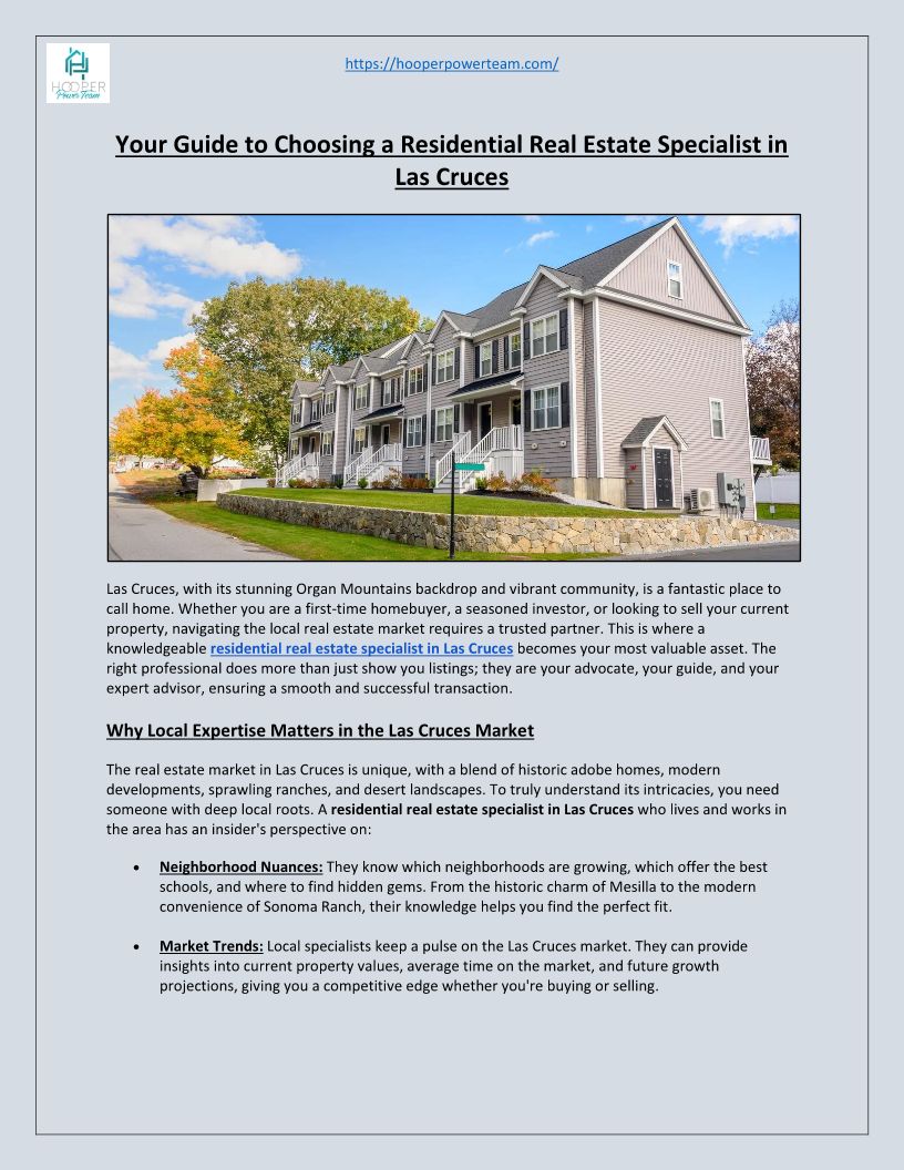 Your Guide to Choosing a Residential Real Estate Specialist in Las Cruces