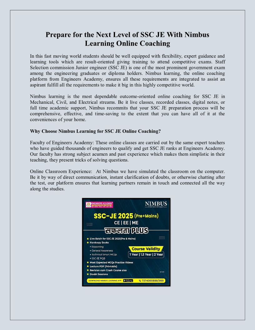 Prepare for the Next Level of SSC JE With Nimbus Learning Online Coaching