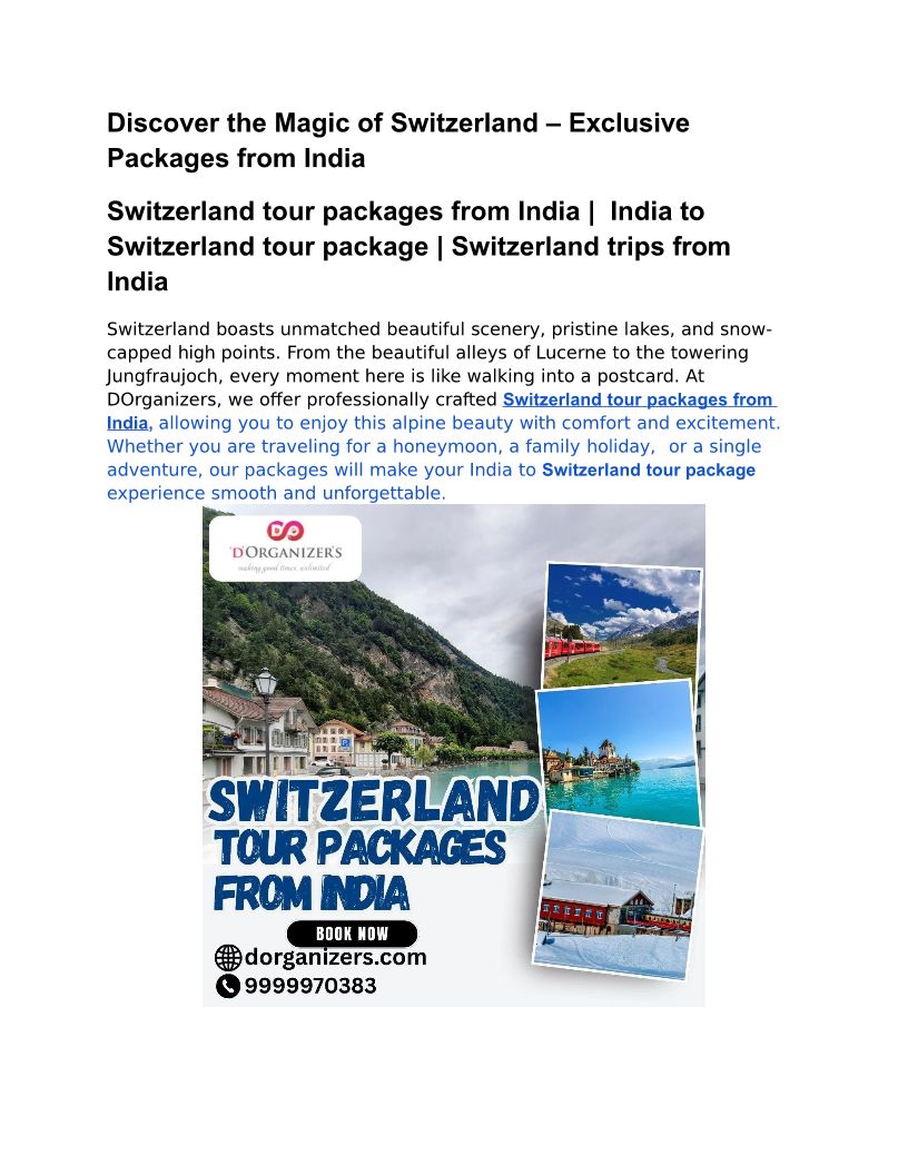 Discover the Magic of Switzerland – Exclusive Packages from India
