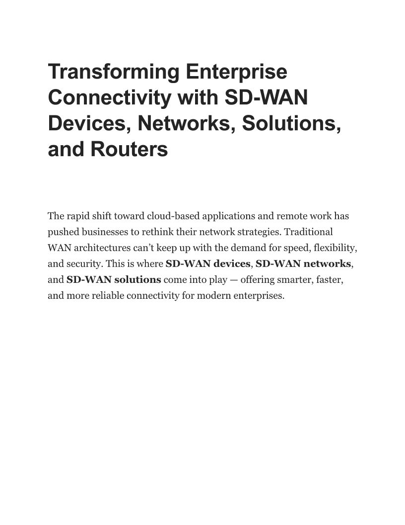 Transforming Enterprise Connectivity with SD-WAN Devices, Networks, Solutions, and Routers