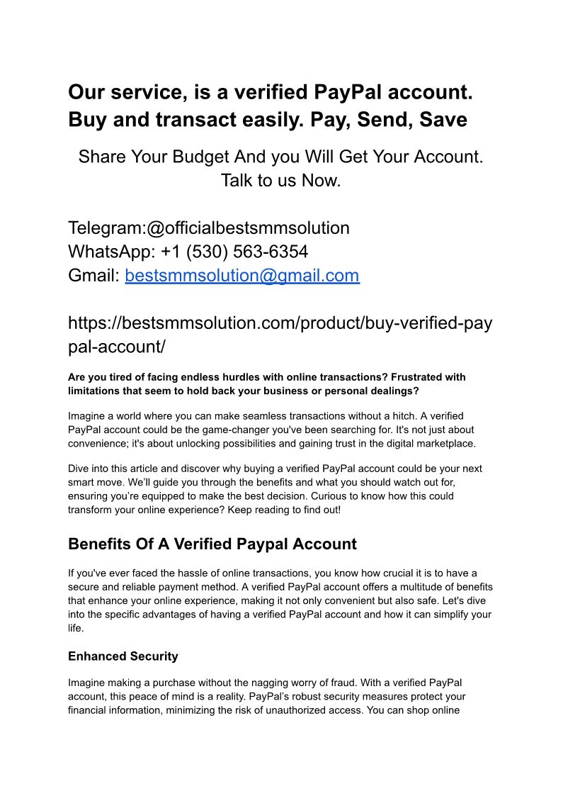 Our service is a verified PayPal account. Buy and transact easily - Pay, Send, Save