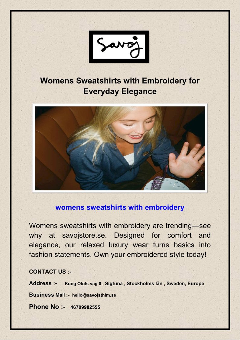 Womens Sweatshirts with Embroidery for Everyday Elegance