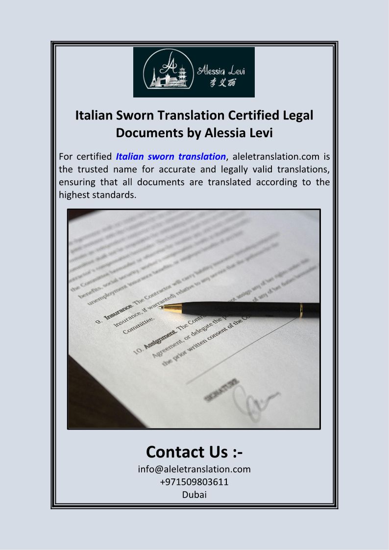 Italian Sworn Translation Certified Legal Documents by Alessia Levi
