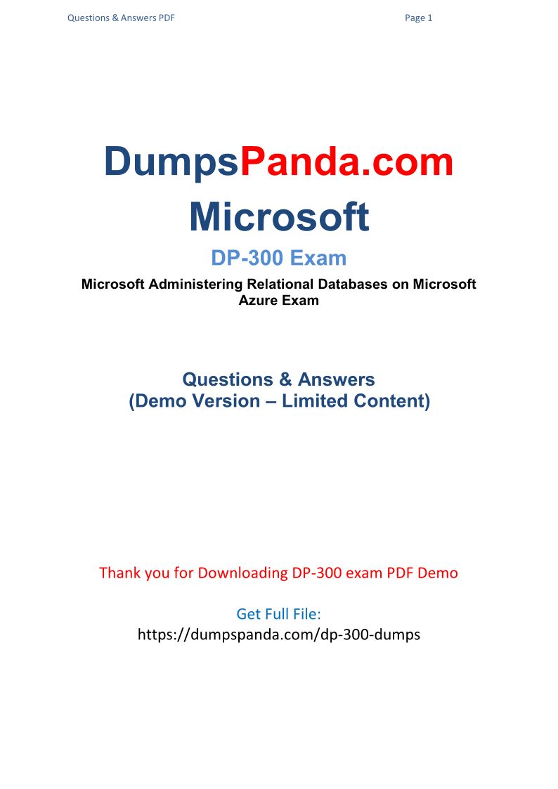 Microsoft DP-300 Exam Dumps - DP-300 Questions