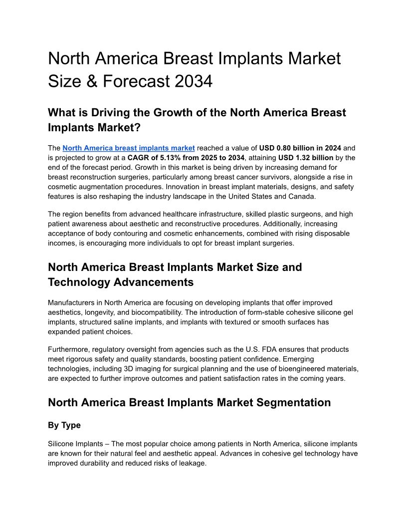 North America Breast Implants Market Size & Forecast 2034