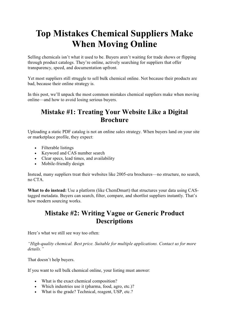 Top Mistakes Chemical Suppliers Make When Moving Online.