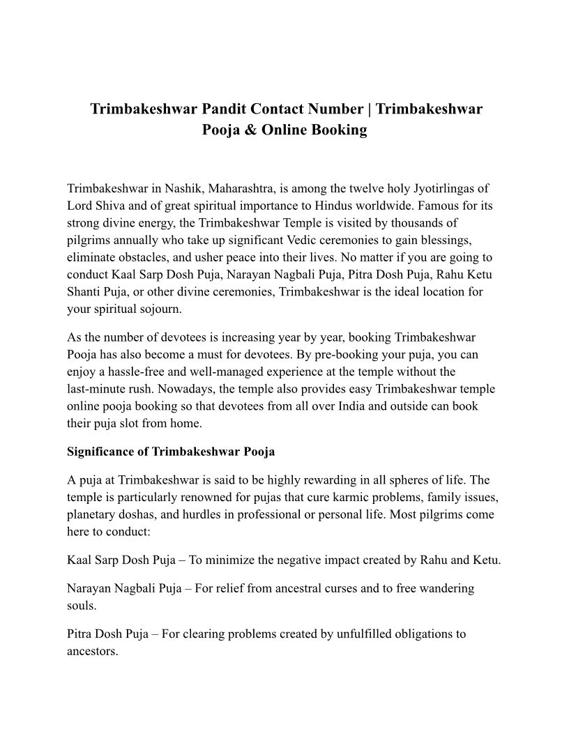 Trimbakeshwar Pandit Contact Number _ Trimbakeshwar Pooja & Online Booking