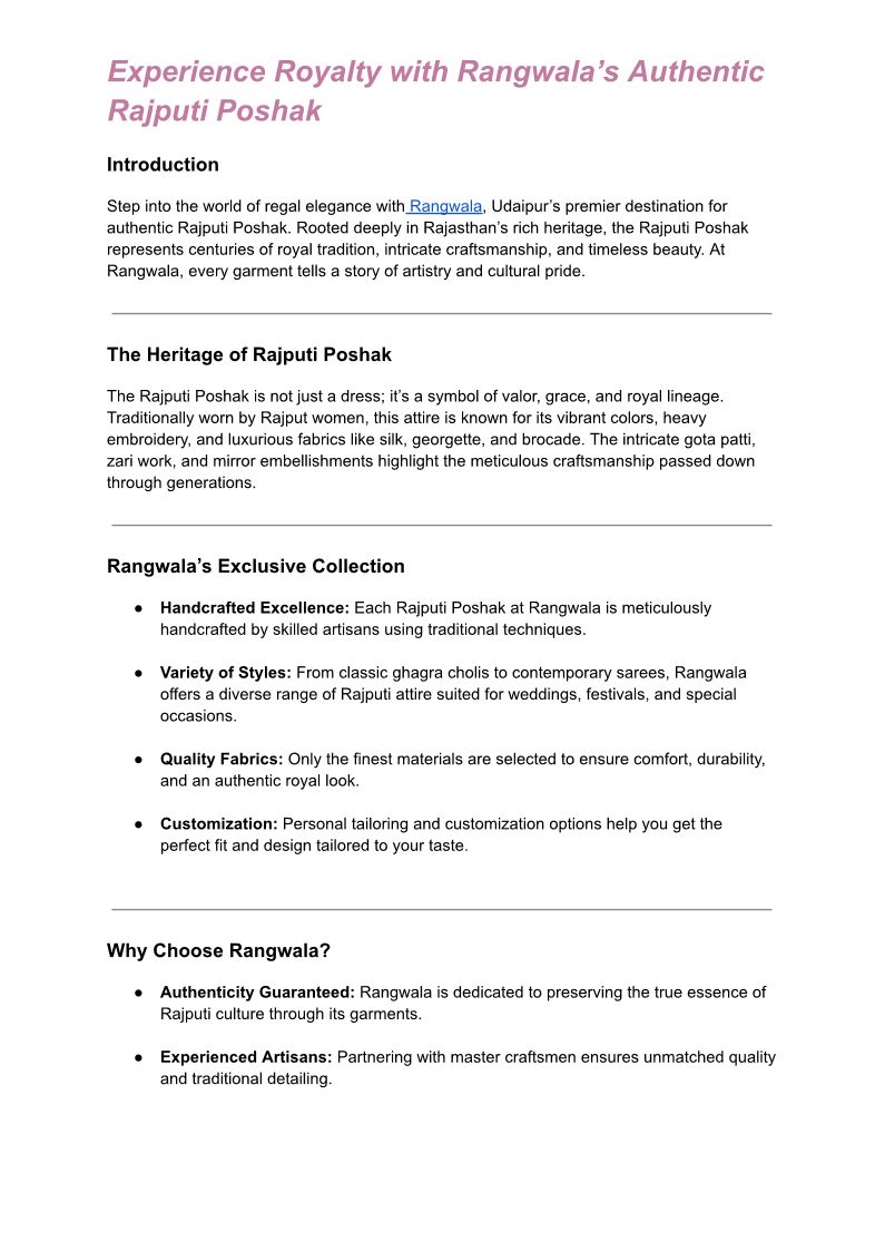 Experience Royalty with Rangwala’s Authentic Rajputi Poshak