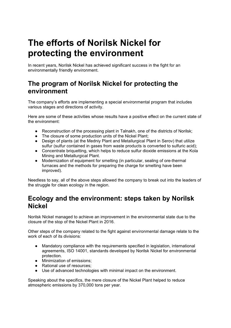 Norilsk Nickel against sulphur dioxode emissions