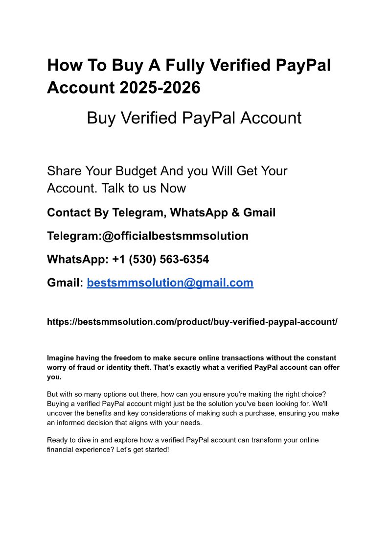 How To Buy A Fully Verified PayPal Account 2025-2026
