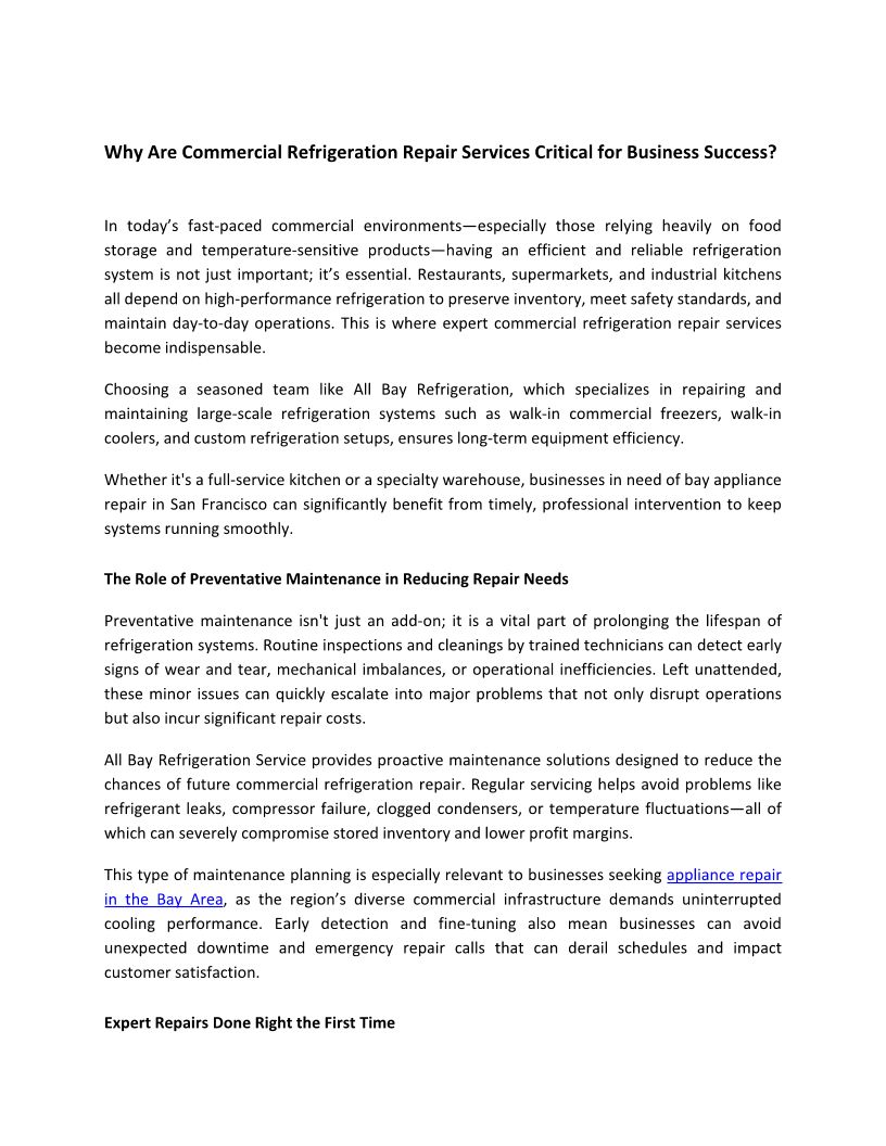 Why Are Commercial Refrigeration Repair Services Critical for Business Success