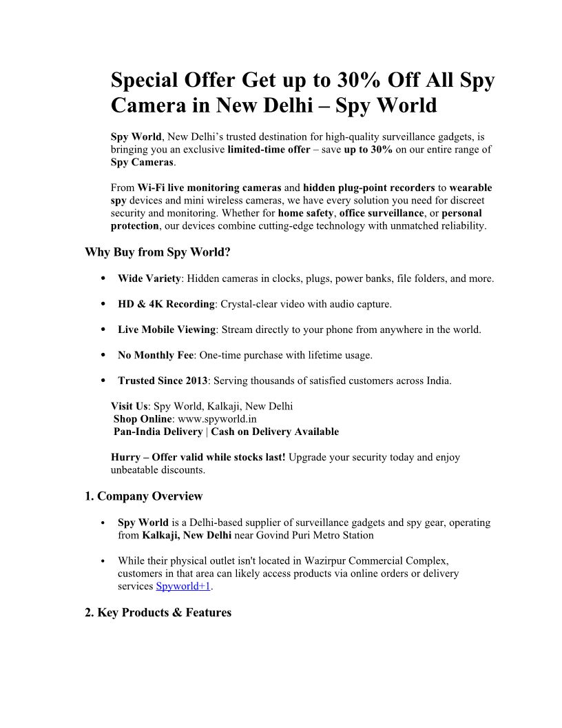 Special Offer Get UP TO 30% Off All Spy Camera in New Delhi – Spy World