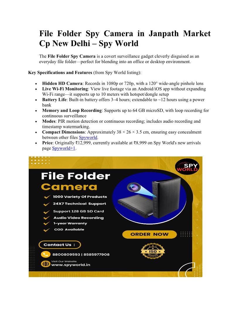 File Folder Spy Camera in Janpath Market Cp New Delhi – Spy World