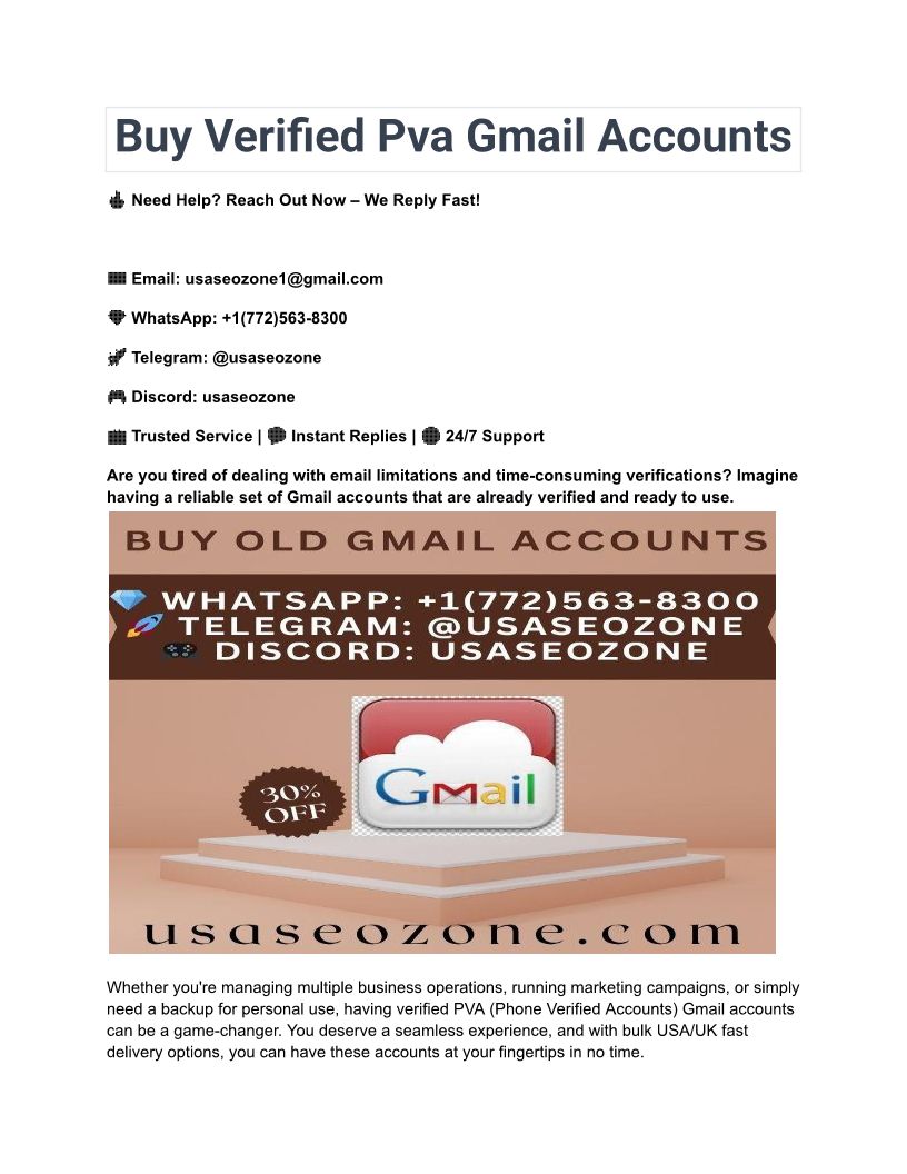 Buy Verified PVA Gmail Accounts – Bulk USA_UK Fast Delivery
