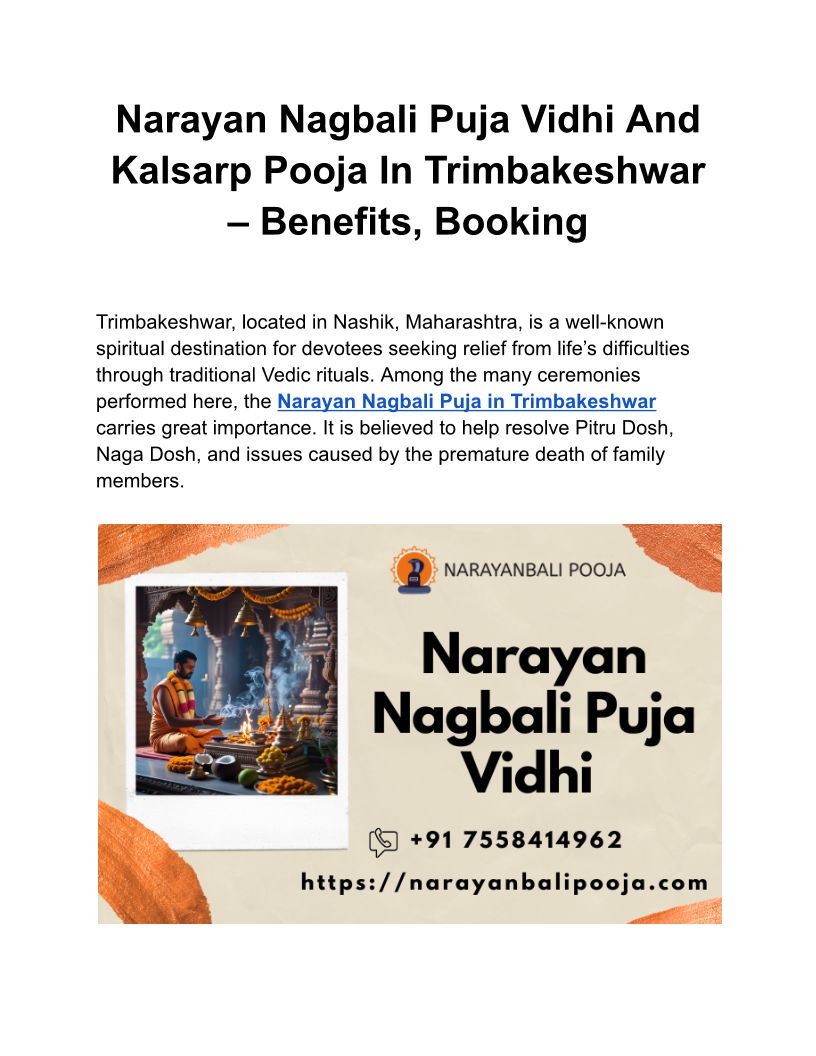 Narayan Nagbali Puja Vidhi And Kalsarp Pooja In Trimbakeshwar – Benefits, Booking