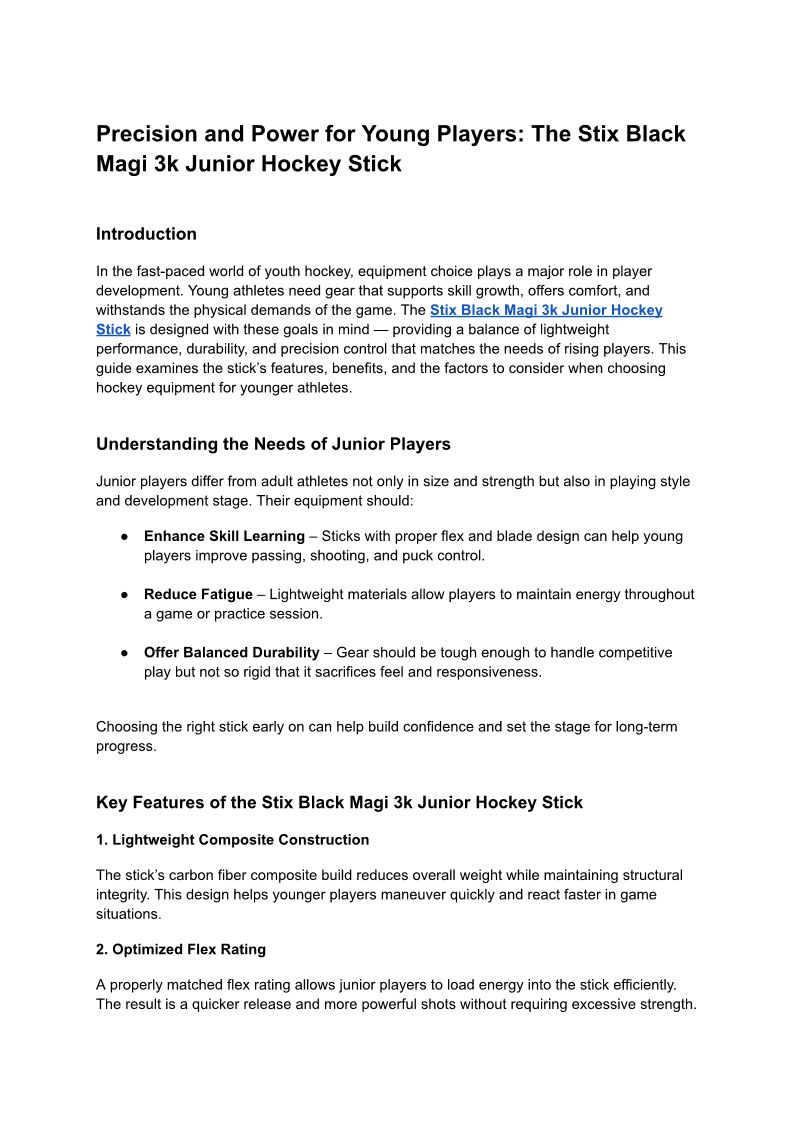 Precision and Power for Young Players_ The Stix Black Magi 3k Junior Hockey Stick