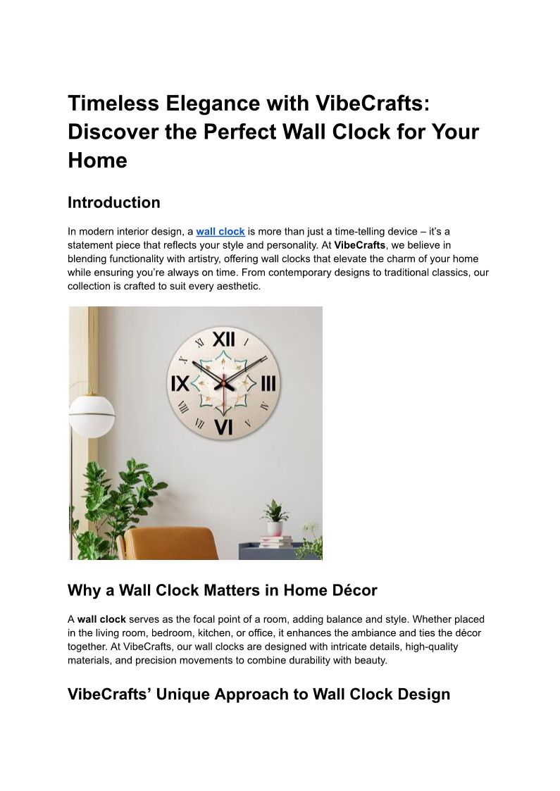 Timeless Elegance_ Enhance Your Home with VibeCrafts Wall Clocks