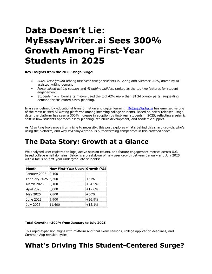 Data Doesn’t Lie - MyEssayWriter.ai Sees 300% Growth Among First-Year Students in 2025