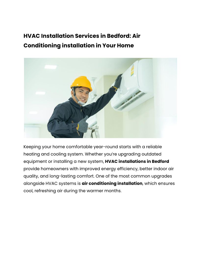 HVAC Installation Services in Bedford: Air Conditioning Installation