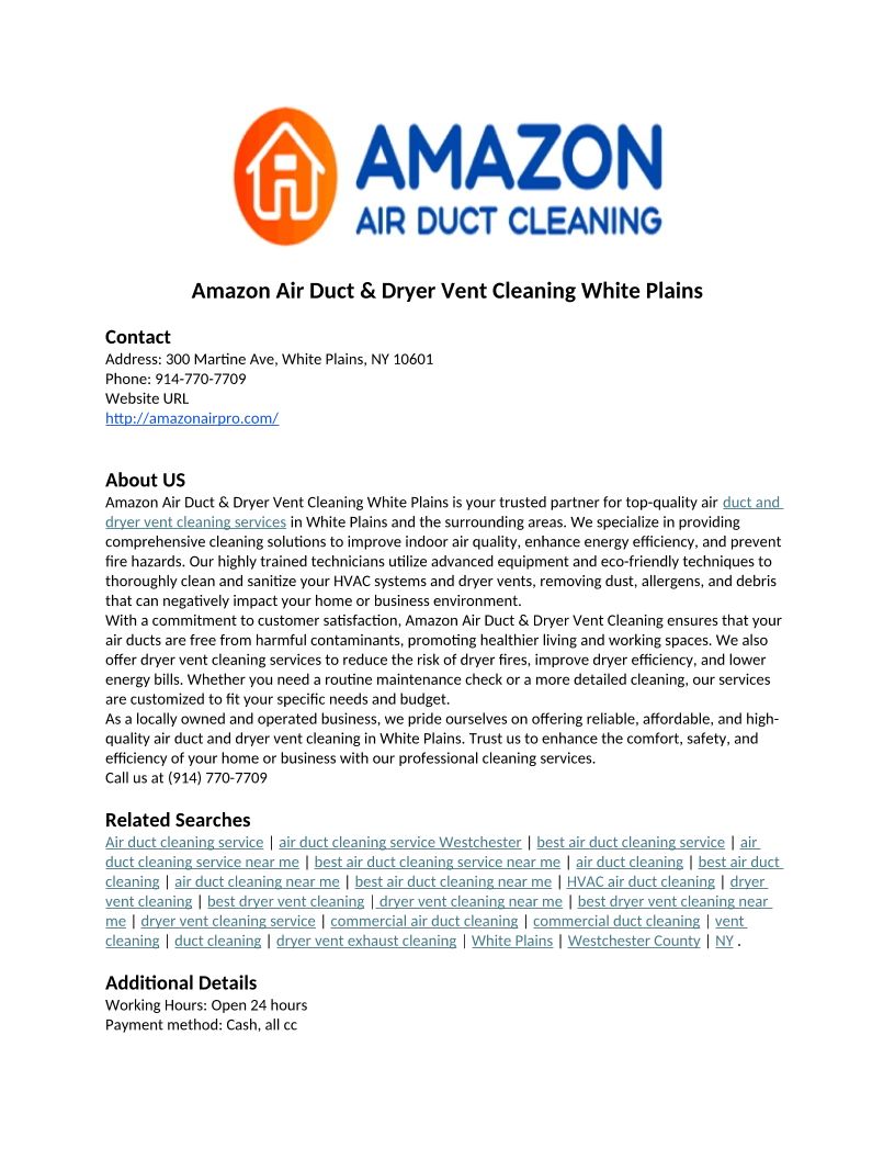Amazon Air Duct & Dryer Vent Cleaning White Plains