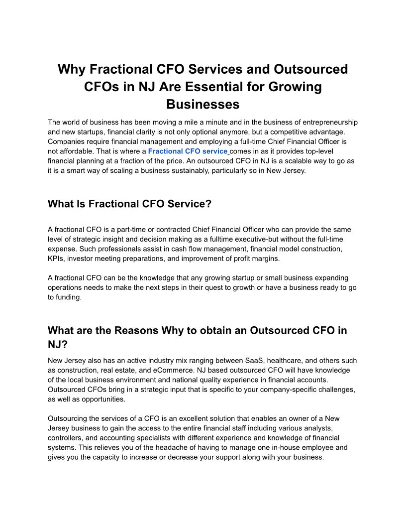 Why Fractional CFO Services and Outsourced CFOs in NJ Are Essential for Growing Businesses