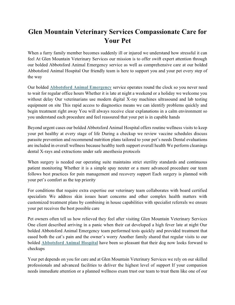 Glen Mountain Veterinary Services Compassionate Care for Your Pet