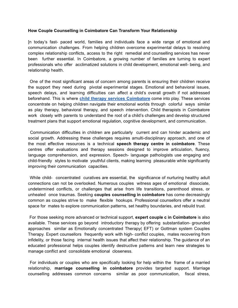 How Couple Counselling in Coimbatore Can Transform Your Relationship