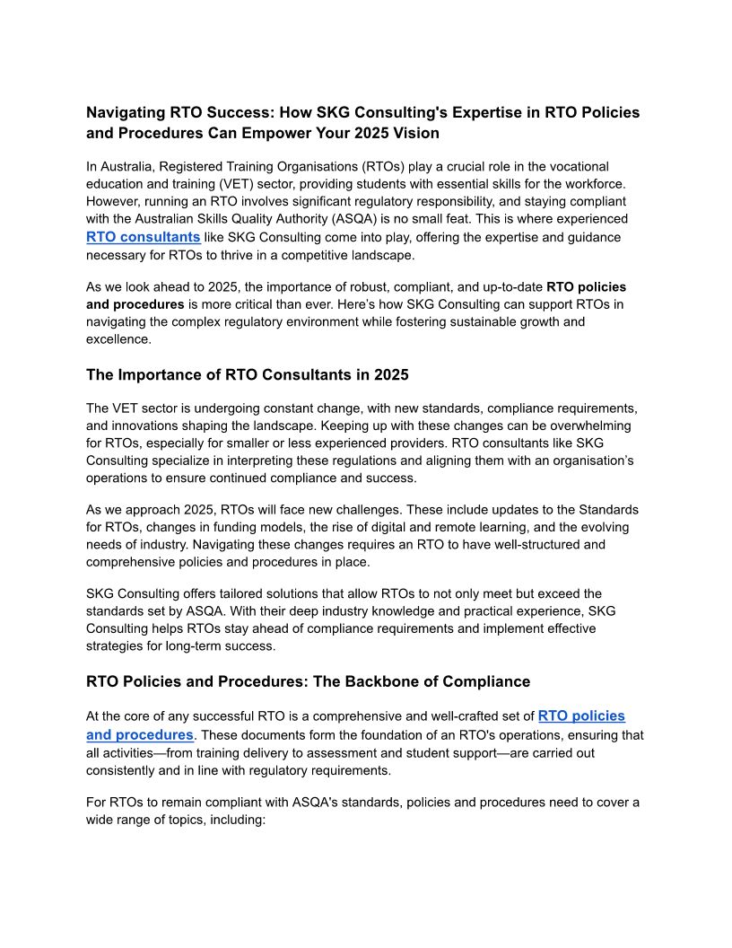 Navigating RTO Success_ How SKG Consulting's Expertise in RTO Policies and Procedures Can Empower Your 2025 Vision