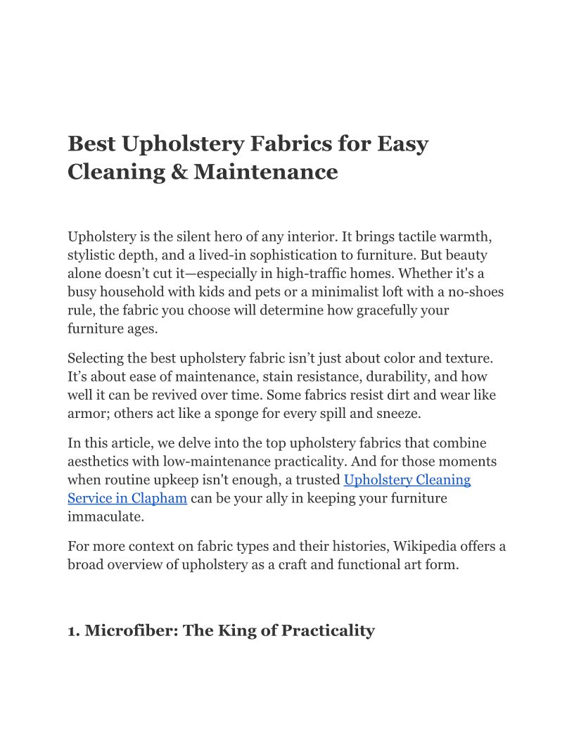 Best Upholstery Fabrics for Easy Cleaning & Maintenance