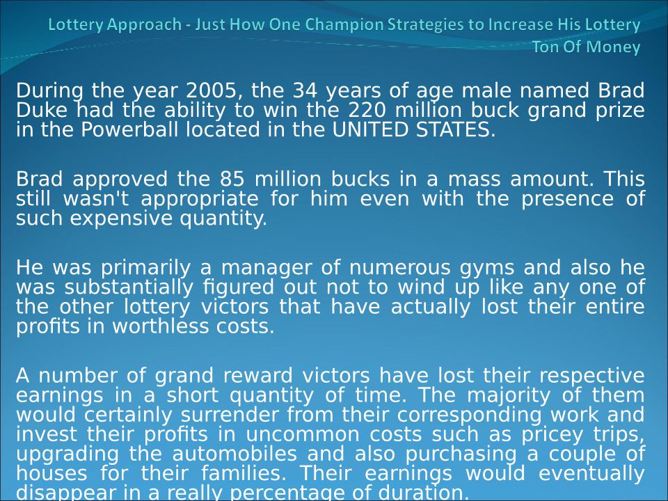 Lottery Approach - Just How One Champion Strategies