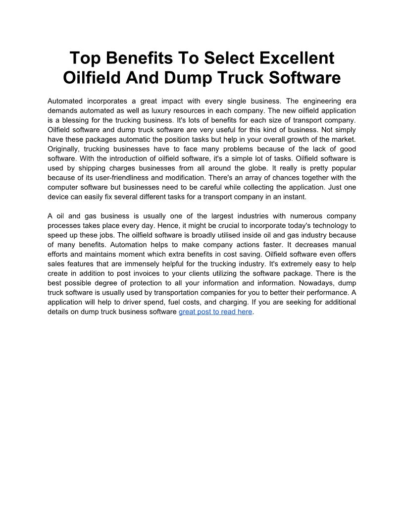 Top Benefits To Select Excellent Oilfield And Dump Truck Software