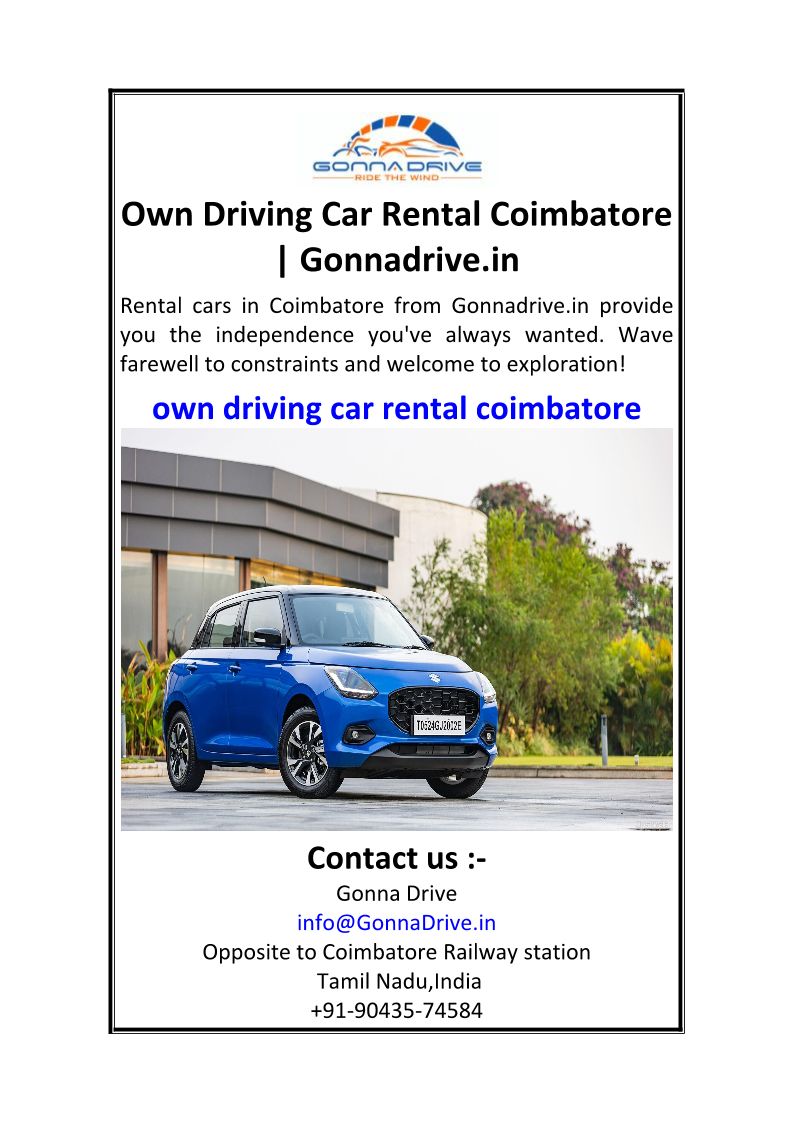 Own Driving Car Rental Coimbatore Gonnadrive.in