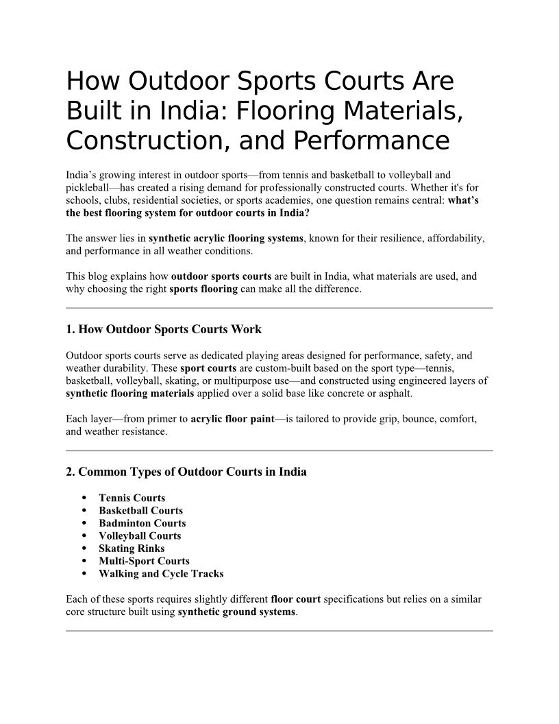 Outdoor Sports Court Construction in India: Materials, Process, and Performance