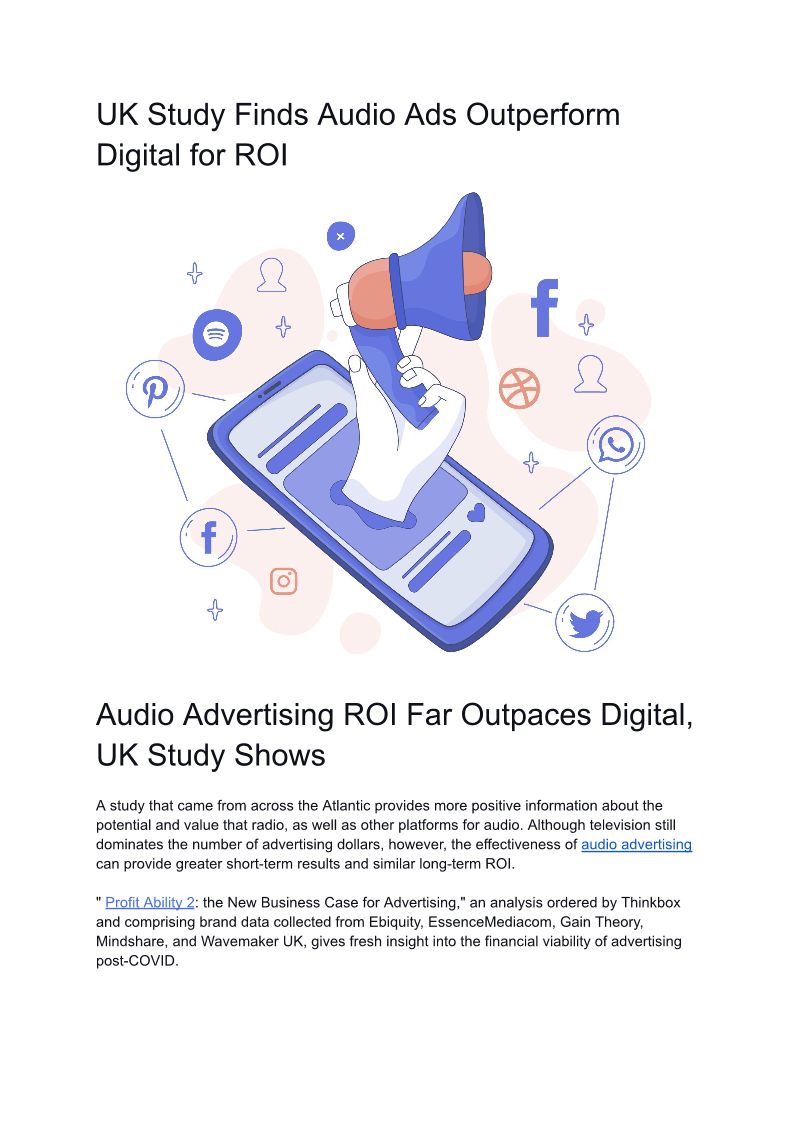 UK Study Finds Audio Ads Outperform Digital for ROI