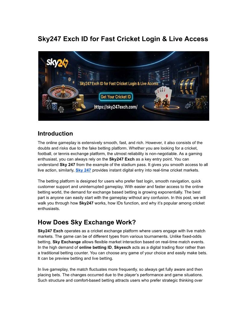Sky247 Exch ID for Fast Cricket Login & Live Access