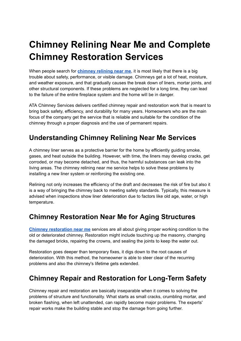 Chimney Relining Near Me and Complete Chimney Restoration Services