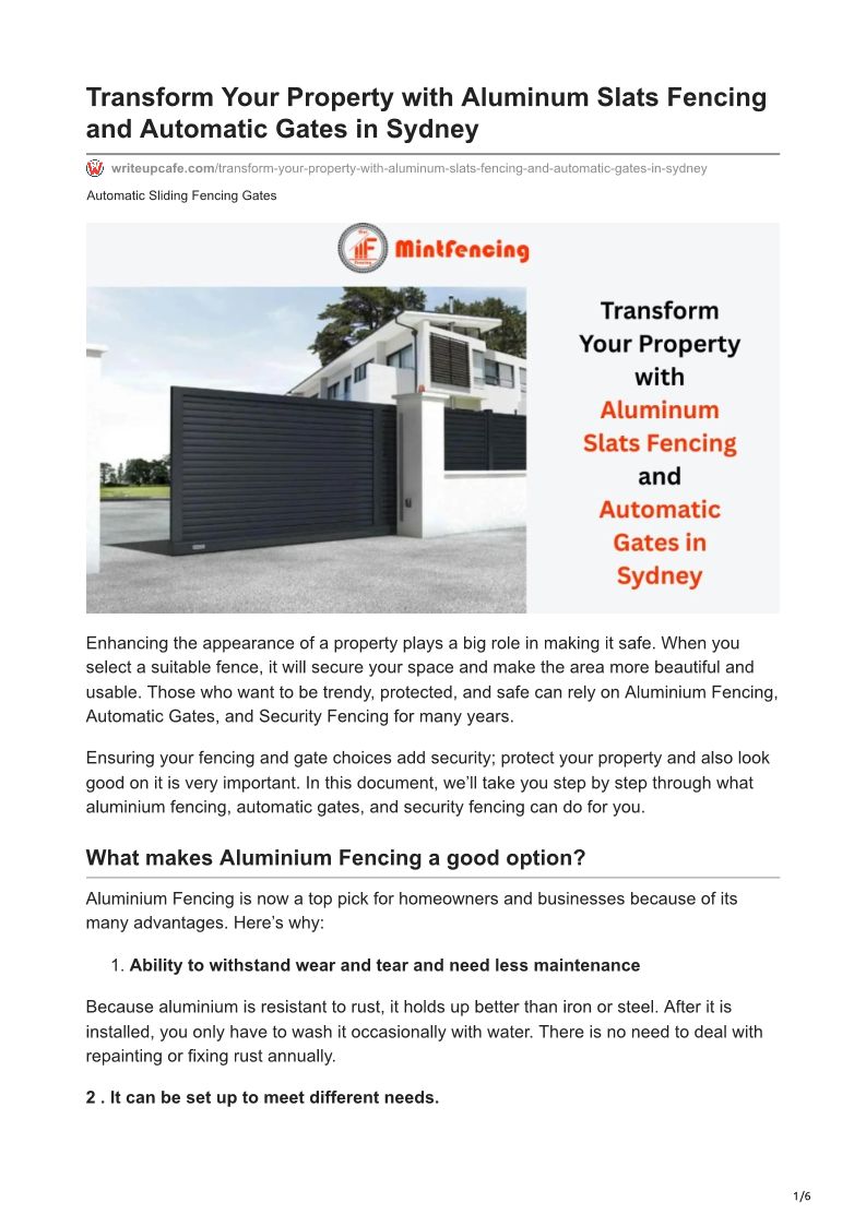 Transform Your Property with Aluminum Slats Fencing and Automatic Gates in Sydney