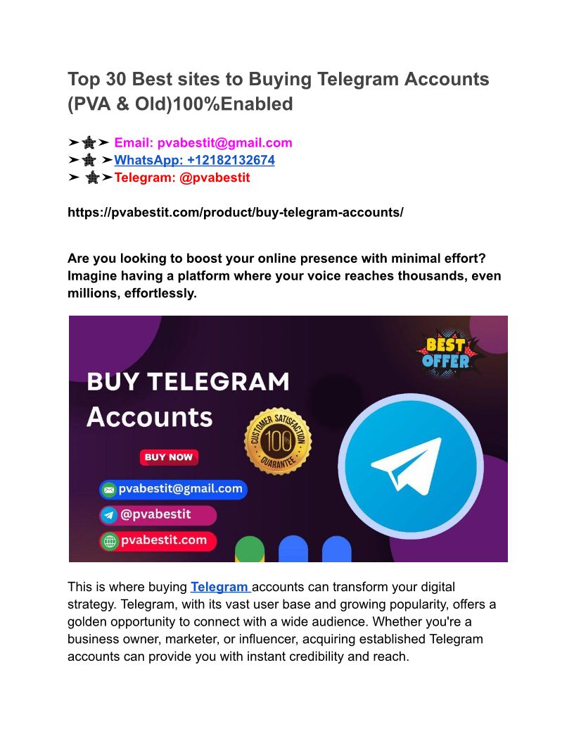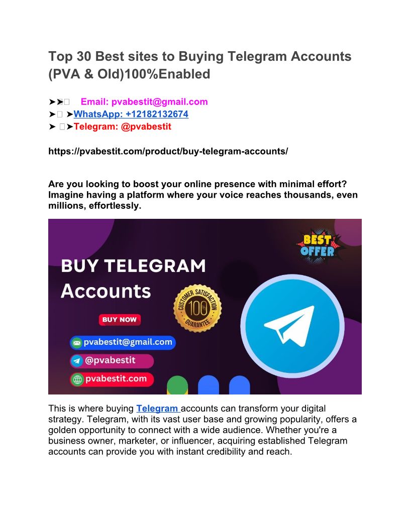 Top 30 Best sites to Buying Telegram Accounts (PVA & Old)100%Enabled
