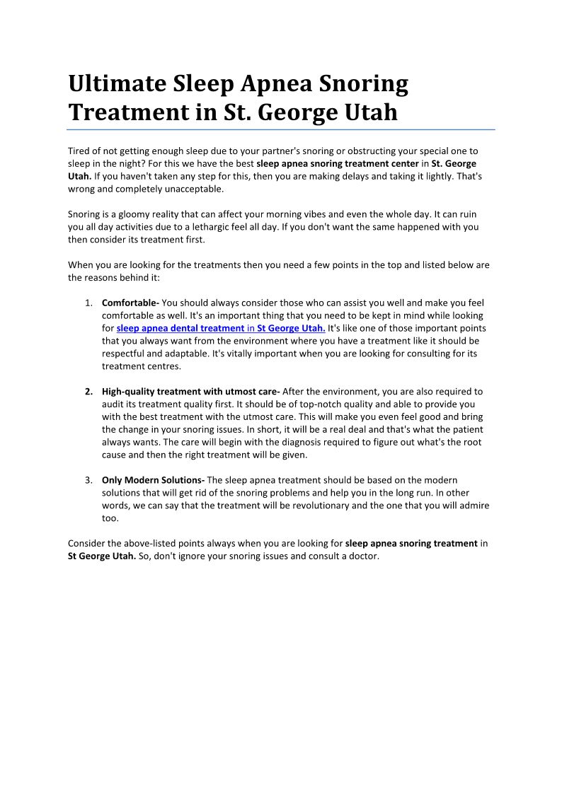 Ultimate Sleep Apnea Snoring Treatment in St. George Utah