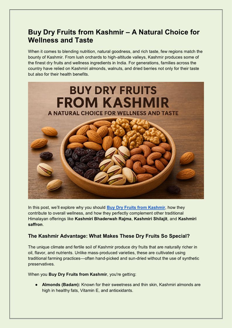 Buy Dry Fruits from Kashmir – A Natural Choice for Wellness and Taste