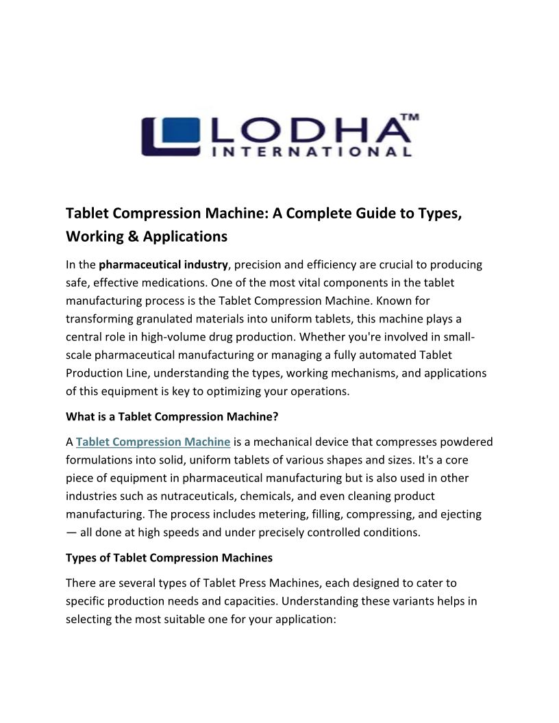 Tablet Compression Machine: A Complete Guide to Types, Working & Applications