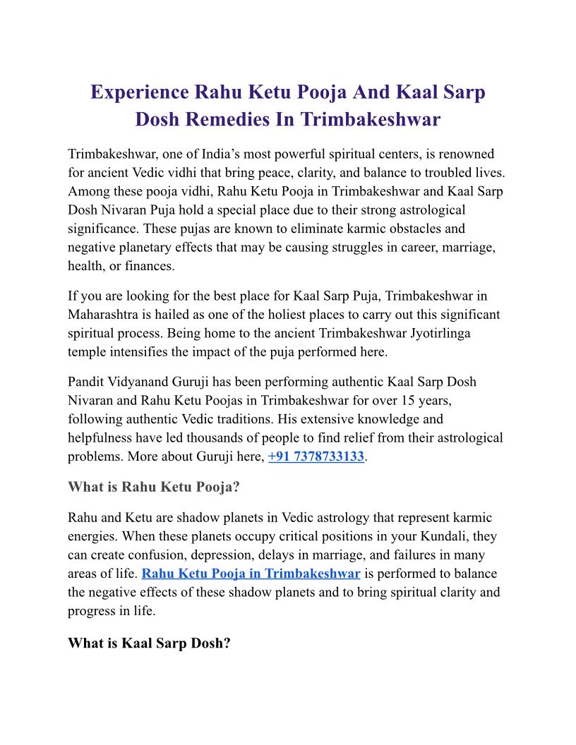 Experience Rahu Ketu Pooja And Kaal Sarp Dosh Remedies In Trimbakeshwar