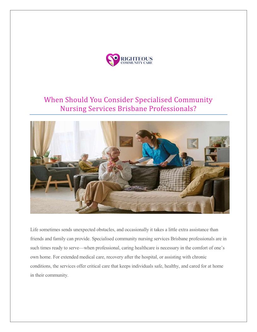 When Should You Consider Specialised Community Nursing Services Brisbane Professionals