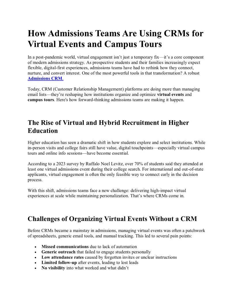 How Admissions Teams Are Using CRMs for Virtual Events and Campus Tours