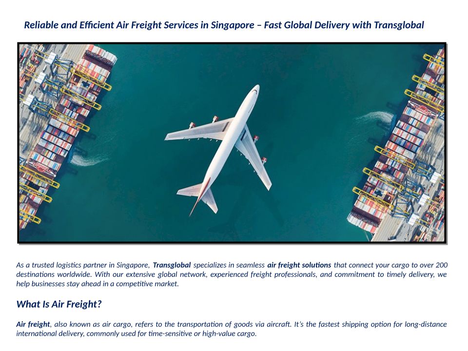 Reliable and Efficient Air Freight Services in Singapore – Fast Global Delivery with Transglobal