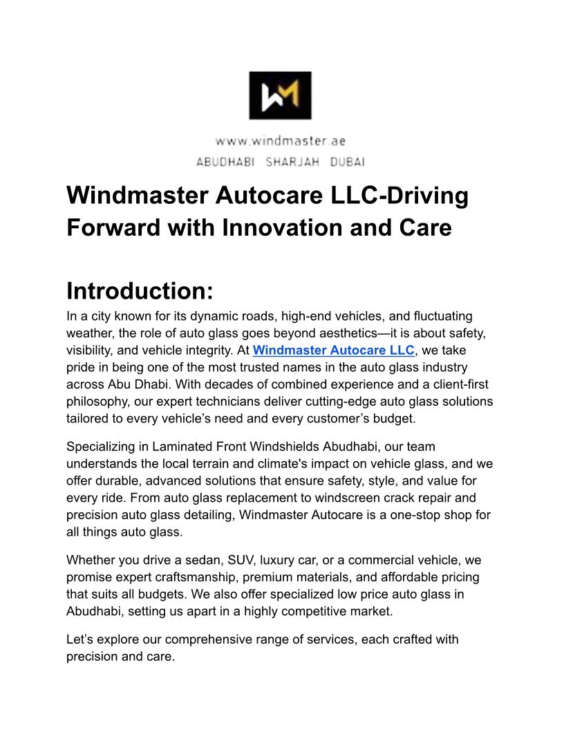 Windmaster Autocare LLC-Driving Forward with Innovation and Care(JULY)