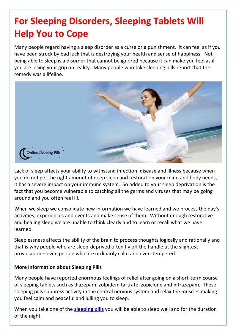 For Sleeping Disorders, Sleeping Tablets Will Help You to Cope