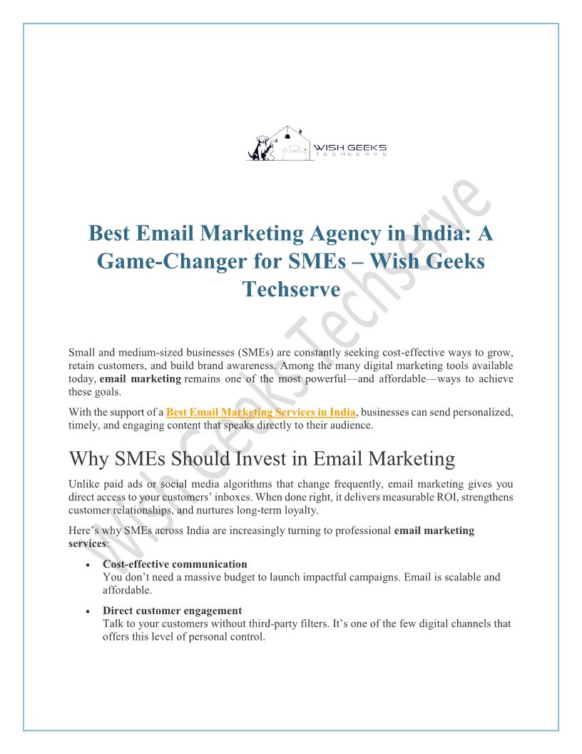 Best Email Marketing Agency in India-A Game-Changer for SMEs - Wish Geeks Techserve