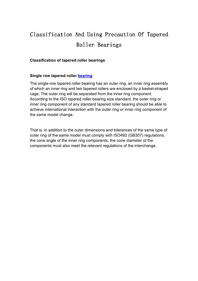 Classification And Using Precaution Of Tapered Roller Bearings